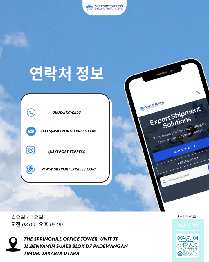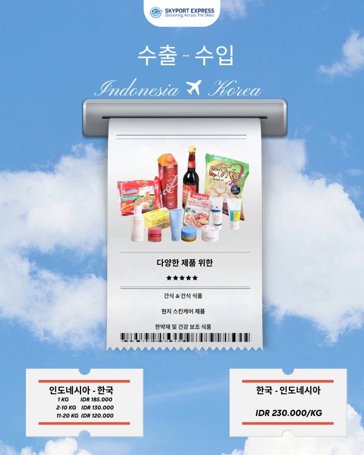 Skyort Express의 전문적인 서비스로한국에서 인도네시아로 아니면 인도네시아에서 한국으로의 화물을 안전하게 처리하고