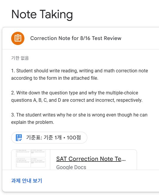 1. 오답노트 작성 : 목표 점수를 달성한 학생은 하나같이 오답노트의 중요성을 강조합니다. 틀렸던 유형의 문제를 바로 잡아가는 원동력! 학원의 가이드 아래 정리된 자신만의 오답 노트의 누적입니다.