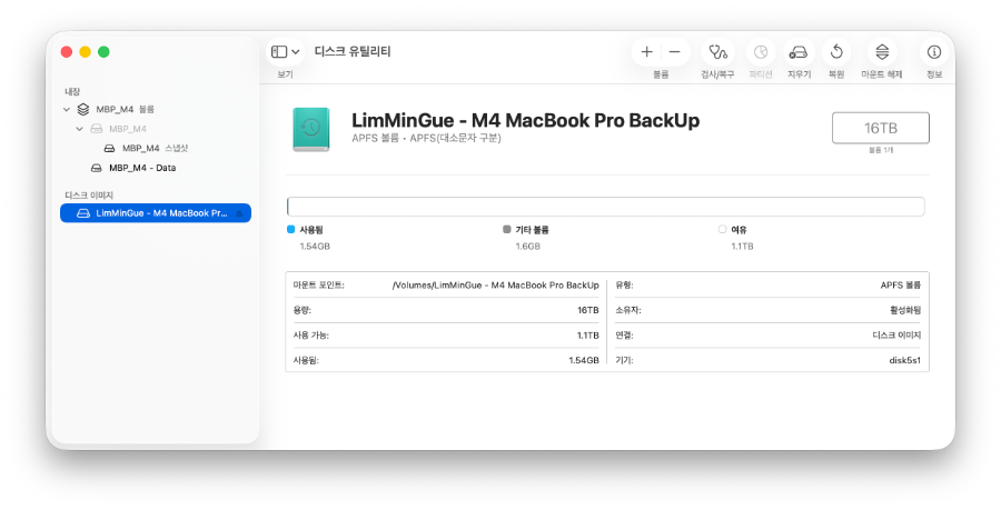 해결 방법은... 일단 기존 대로 TimeMacine BackUp을 NAS로 진행하면 작은 이미지만 생성되고 백업이 진행되지 않고 오류가 발생합니다.