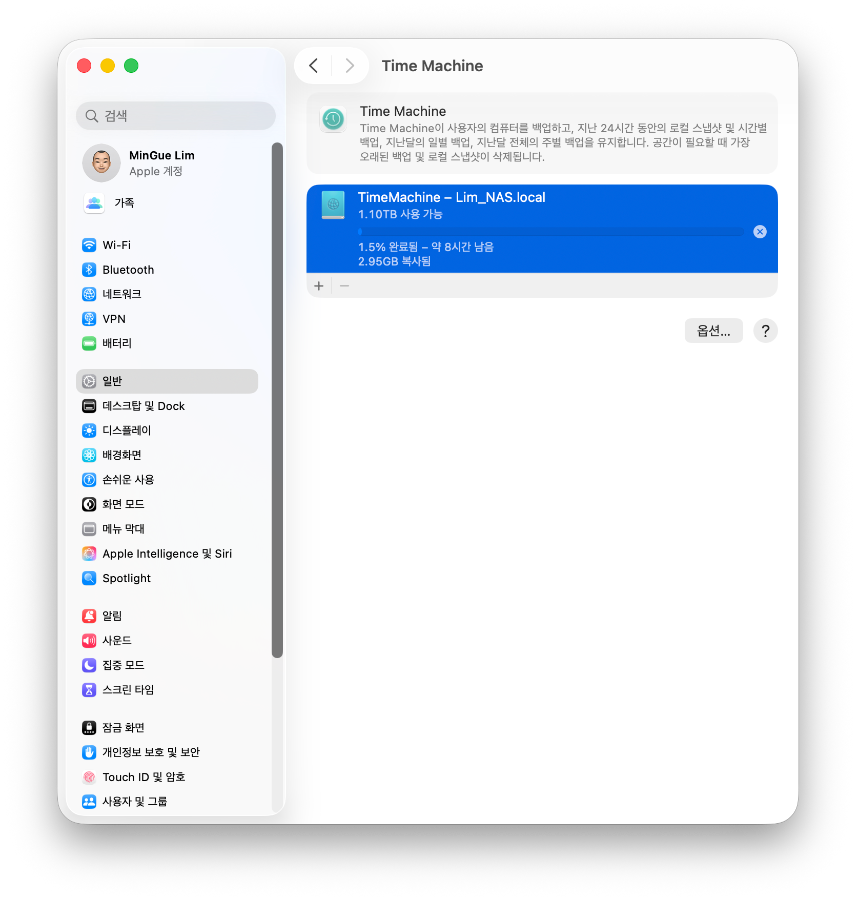다시금 TimeMachine에서 백업을 시도해보시면 정상적으로 백업을 진행합니다.