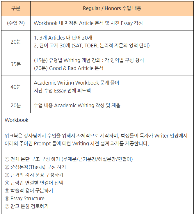 ✔ Literature (문학분석) 커리큘럼✔Academic Writing 커리큘럼